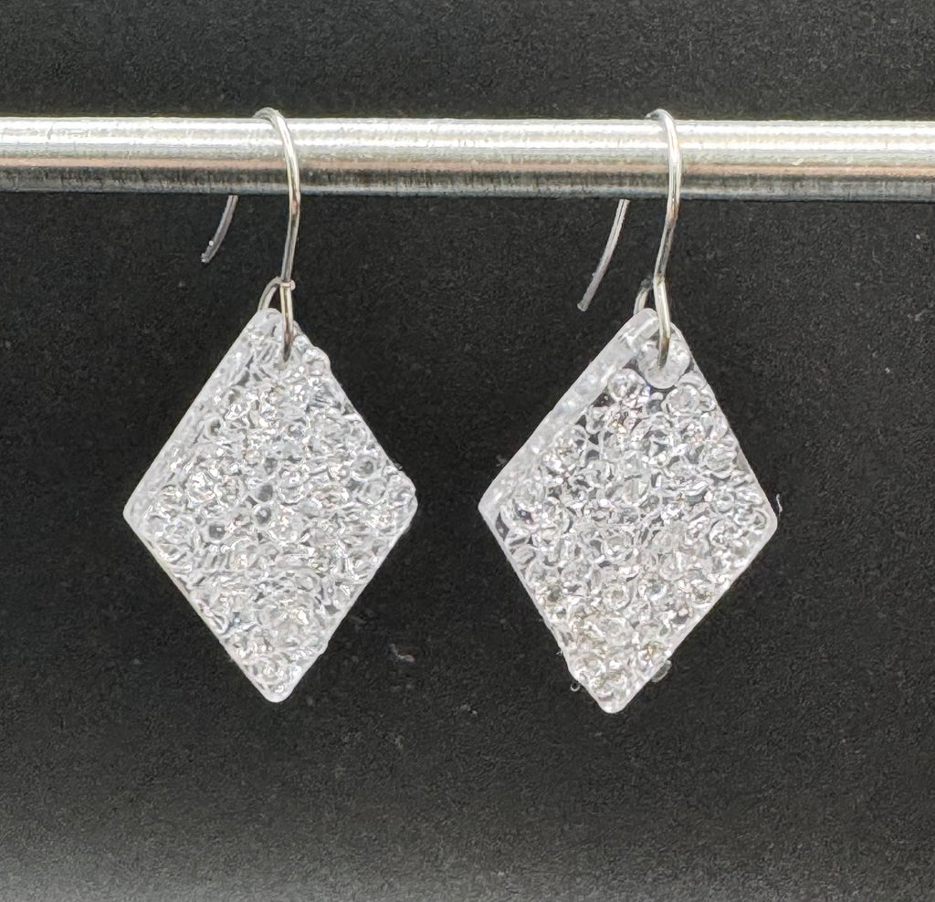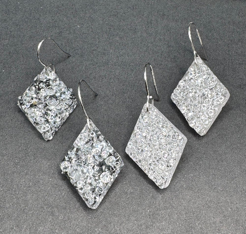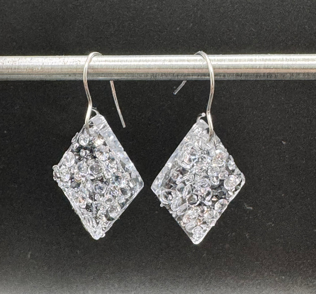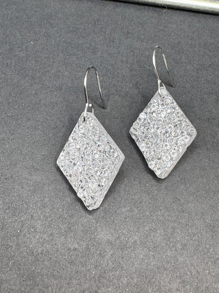 diamond shaped dangle crystal earrings- faux druzy drusy, lab grown diamonds CZ cubic zirconia
