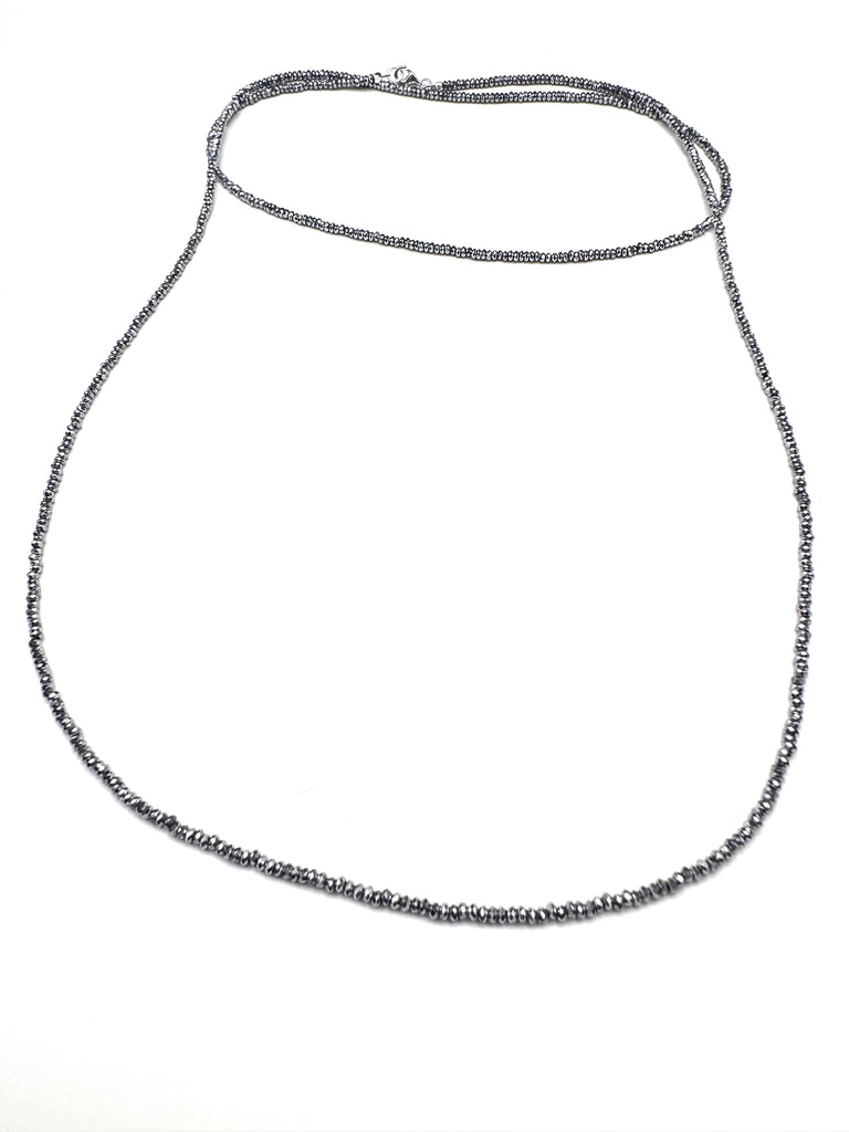 Dazzling natural gemstones necklace. Micro-faceted 36inches. With sterling silver lobster clasp. Silver pyrite