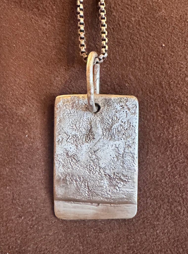 Rectangular pendant solid sterling silver with reticulated one side and middle reticulated panel on the reverse.
