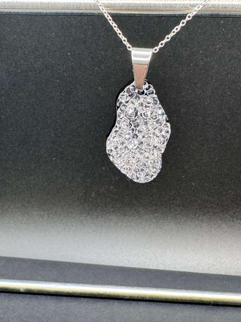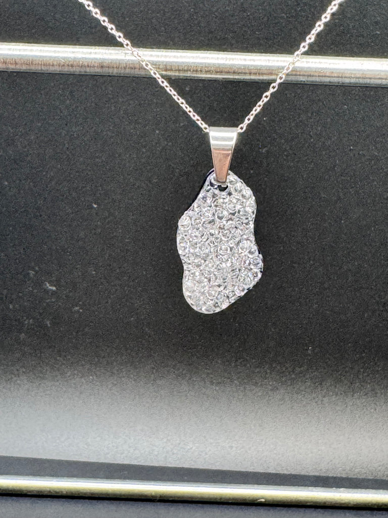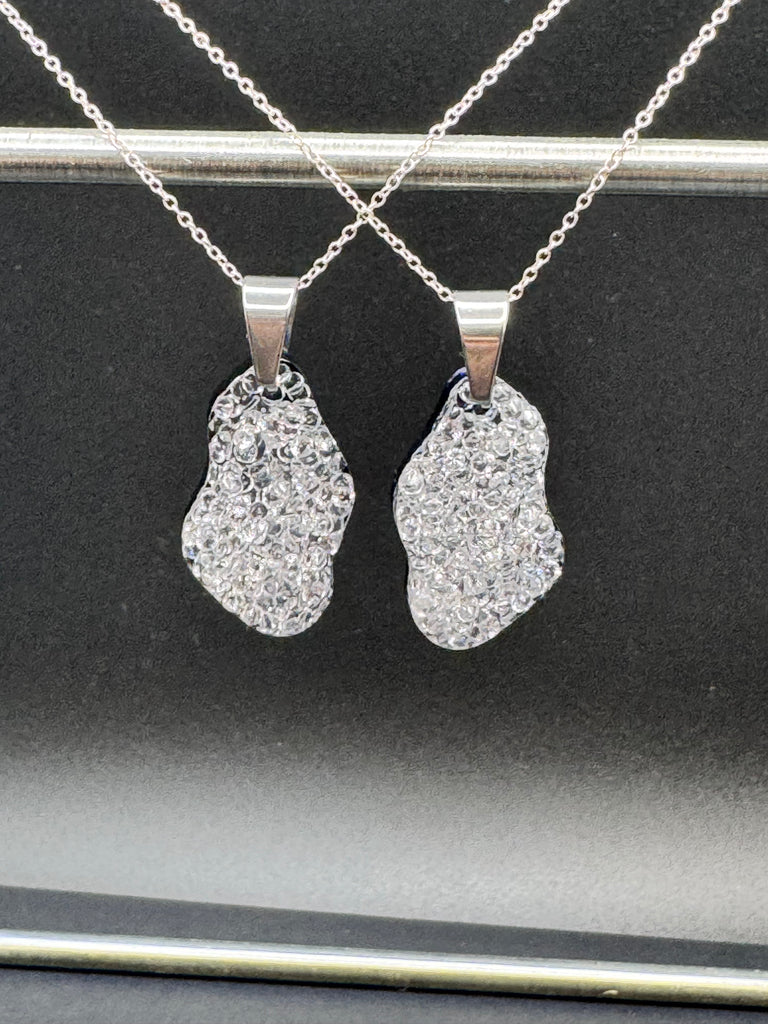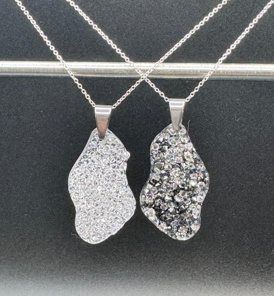 Freeform 1.25 inch pendant— from our luxe geode collection—inspired by natural druzy geode formation. Each piece is meticulously created in our workshop. And as such might differ slightly from picture.